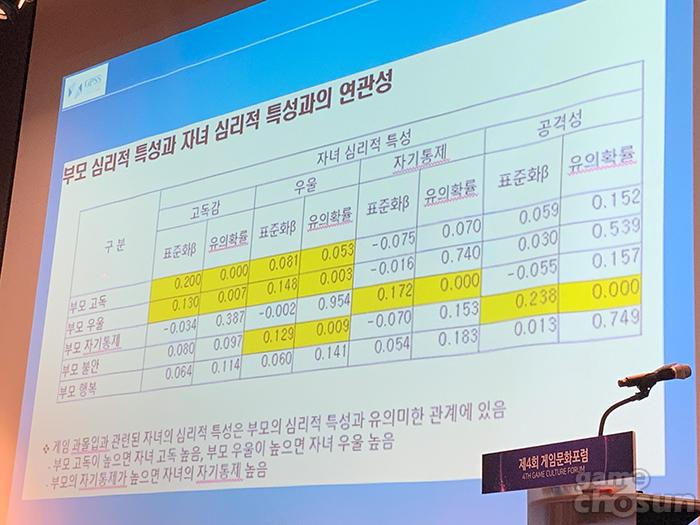 이런 변인 중에서 부모자체가 가지는 사회 심리적 영향도 청소년의 게임과몰입에 영향을 줄 수 있다는 것도 제시됐다. 정의준 교수는 “부모의 변화가 어떤 영향을 주는지 살펴봤을 때 부모 스스로의 고독, 우울, 자기통제가 자녀들에게도 상당수준의 영향을 미친다는 것을 데이터를 통해 인과적으로 도출됐다”고 설명했다.