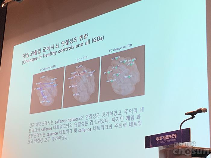 기조강연을 비롯한 다양한 발제가 이뤄졌으며, 이중 중앙대 정신건강의학과의 한덕현 교수는 ‘게임이 우리 뇌에 미치는 영향은’이라는 주제로 발제와 함께 지난 5년간 청소년을 대상으로 진행된 연구 결과를 공유했다.