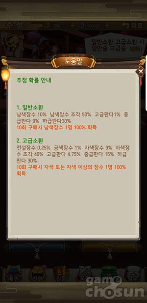 제공 중인 뽑기 확률표 = 게임조선 촬영