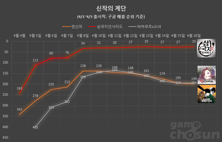(게임펍, 4/10 출시, 301위 → 111위 → 78위 → 59위 → 49위 → 40위)