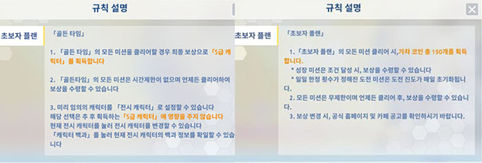 마찬가지로 공개 이후 변경된 초보자 플랜 지급 룰. 변경 전(좌), 변경 후(우)