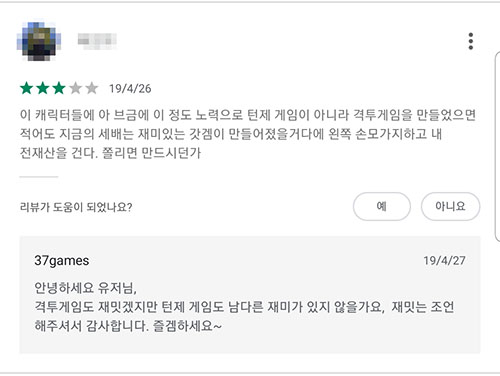 이슈가 발생한 직후 해명 공지사항에 게임 PM 자랑소개를 하는 바람에 이용자들의 비아냥이 더 심해진 데다가 더구나 스토어에 이런저런 이슈에 대한 항의성 리뷰에 대해 오타투성이의 어눌한 말투의 답변, 혹은 복사+붙여넣기식 댓글이 달려서 이건 돌려서 멕이는 거(?) 아니냐-며 더 조리돌림 당하기도.