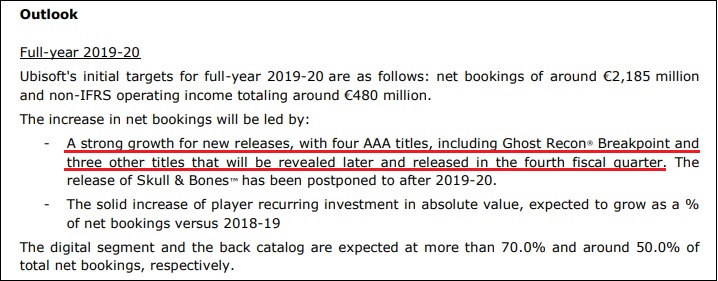AAA 타이틀 4종 출시 및 '스컬앤본즈' 출시 연기 소식 내용 = 18-19 실적 발표 보고서 발췌