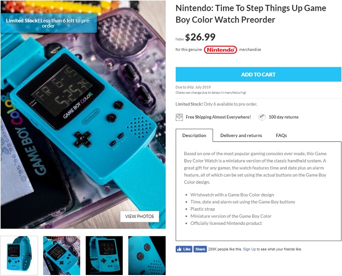 영국의 온라인 쇼핑 업체, '메코이드(Merchoid)'는 닌텐도로부터 게임보이 컬러의 공식 라이센스를 획득, 게임보이 컬러 워치의 예약 구매를 시작했다. 메코이드는 영화와 TV프로그램, 코믹스, 게임 등의 굿즈를 판매하는 영국의 온라인 쇼핑 업체다.