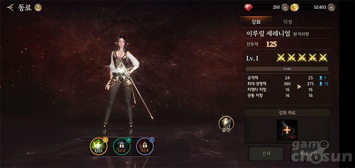 먼저 '동료' 시스템은 '제레인트', '아프나이델', '이루릴 세레니얼'이나 '후치 네드발'과 같이 원작에서도 지명도가 높은 인물들을 동료로 삼아 전투 중에 소환, 특수한 버프를 얻거나 일정 시간 직접 전투에 참여할 수 있는 시스템. 한 번에 최대 3명까지 설정해 동시 소환이 가능하다. 캐릭터별 스킬이나 효과가 다르고, 동료 성장을 통해 추가 스킬을 얻거나 능력치를 높일 수 있다.
