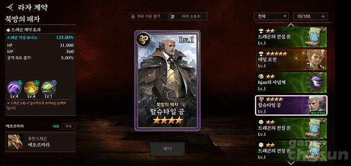 드래곤과 계약하여 부가 능력치를 부여하는 라자 = 게임조선 촬영
