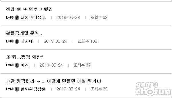 몇 번의 점검 이후에도 서버 불안 현상이 계속 됐다 = 공식 커뮤니티 갈무리