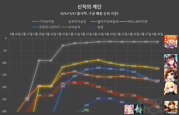 (유엘유게임즈, 5/21 출시, 113위 → 24위 → 16위 → 9위 → 8위 → 6위→ 5위)