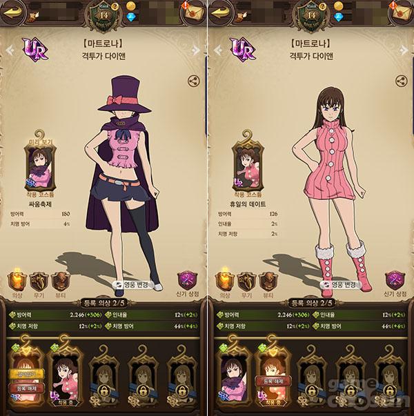돼지의 모자 주점에서 멜리오다스, 반을 활용한 요리 콘텐츠나, 다이앤에게 말을 걸어 장비 분해를 한다거나, 엘리자베스의 의상실 등 일반적인 모바일게임에서 보면 UI 버튼 하나로 지나갈 수 있는 각종 콘텐츠를 인물들과의 대화를 통해 기능을 선택하고 풀어나가는 구조를 만나볼 수 있다. 반면에 게임의 방향성으로만 생각하면 원작과는 전혀 상관이 없는, 모바일게임화 하며 추가된 '퀘스트'나 '뽑기', '상점' 등은 여타 모바일게임처럼 UI 버튼을 배치했다. 기능형 시스템과 모험 콘텐츠를 확실하게 분리한 셈이다.