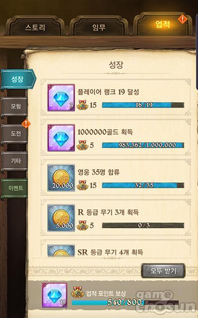 업적 달성과 누적 보상으로 다이아를 지속 지급한다 = 게임조선 촬영
