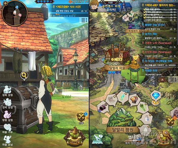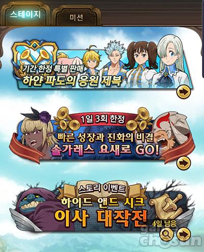 메인 시나리오 도중 다이아를 지속적으로 수급할 수 있는 것은 물론 원작 스토리와 동일한 루트로 동료 캐릭터를 입수할 수 있다. 특히, 진행 도중 SR 캐릭터를 'SSR, UR까지 업그레이드할 수 있는 캐릭터 진화 퀘스트', 아예 'SSR 킹과 SSR 다이앤'을 동료로 얻을 수 있는 동료 입수 퀘스트가 존재하므로 파티 투급을 올리기 위해서도 반드시 메인 시나리오를 우선적으로 미는 것이 좋다.