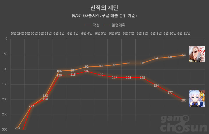 (넷마블, 6/4 출시, 18위 → 13위 → 5위 → 5위 → 3위 → 2위)