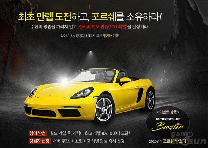 오픈 이전부터 전 서버 최초 만렙 달성자에게 '2020년식 포르쉐박스터'를 지급하는 이벤트와 해당 인원이 소속된 길드에게 길드 운영 자금으로 '백화점 상품권 2천만 원'을 지급하는 이벤트를 전면에 내세웠다. 말이 좋아 전 서버 최고 만렙 달성이지, 사실상 결제 한도도 없이 지르면 지를수록 세지고 빨라지는 모바일게임에서 엄청난 과금 레이스를 불러일으킬 수밖에 없는 이벤트다.