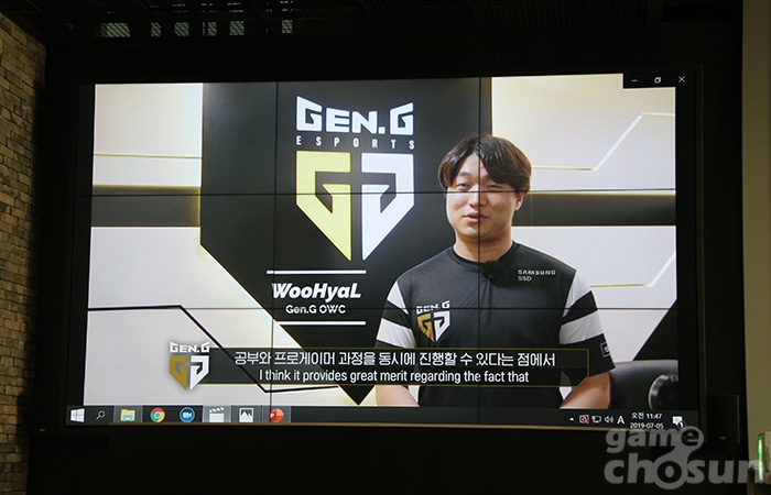 공부와 프로게이머 과정을 동시에 진행한다는 점에서 메리트가 있다고 언급하는 우햘 선수 = 게임조선 촬영