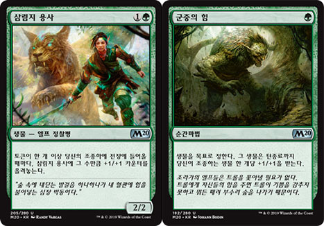 삼림지 용사도 마찬가지로 초반부터 등장해서 지속적으로 강해지는 카드입니다. 단, 토큰에 한정되므로 토큰을 만드는 몇몇 카드와 연계가 되어야 합니다.