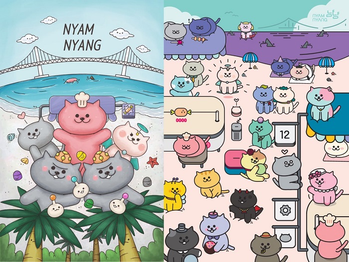 '냠냥'은 많은 이들에게 반려동물로 사랑받고 있는 고양이를 소재로 개발된 작품이다. 고양이가 갈비를 구워서 다른 고양이에게 판매하고, 수익을 얻어서 식당을 인테리어하게 된다. 그리고 인테리어를 보고 더욱 많은 고양이가 몰려오는 타이쿤류 작품이다. 총 4개의 타임으로 분류돼 있는데, 각 타임마다 이용자가 주인공 고양이를 관리해줘야 하며, 워라밸이 무엇인지 가르쳐주는 것이 특징. 특히 게이머에게 불편함을 주지 않기 위해 광고를 최소화했다. 총 60종의 고양이가 등장하므로 고양이를 좋아하는 게이머에게 안성맞춤이다.