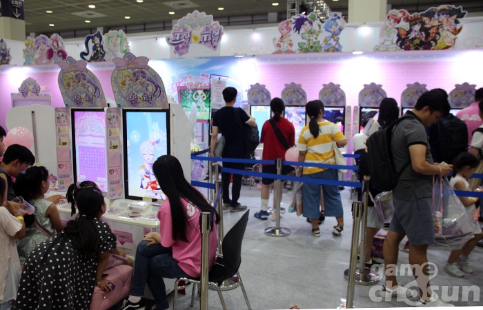타카라토미에서 제작 및 유통을 진행하고 있는 여아용 아이돌 육성 아케이드 게임 프리파라= 게임조선 촬영