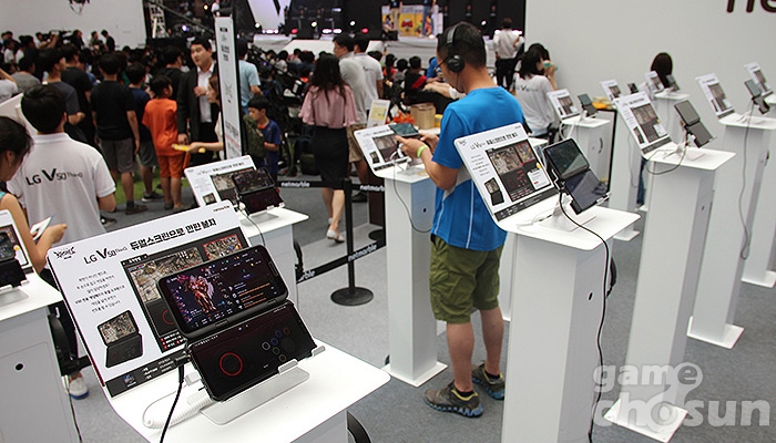 넷마블에서는 리니지2레볼루션, 블레이드앤소울레볼루션, 킹오브파이터즈올스타, 일곱개의대죄:그랜드크로스 등 자사의 대표작을 V50의 듀얼스크린으로 즐길 수 있는 체험존과 다양한 이벤트를 준비했으며 넥슨, 에픽게임즈, 슈퍼셀, 펍지 등의 부스에서도 게임을 플레이하기 위해 줄지어 선 수많은 사람들을 만나볼 수 있었다.