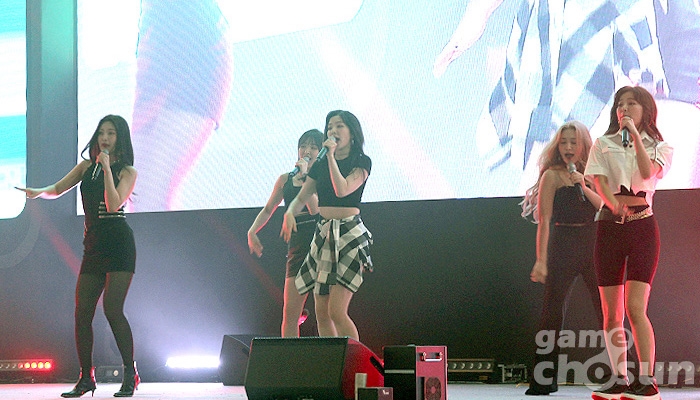 축하공연을 진행하고 있는 인기 아이돌 그룹 레드벨벳 = 게임조선 촬영