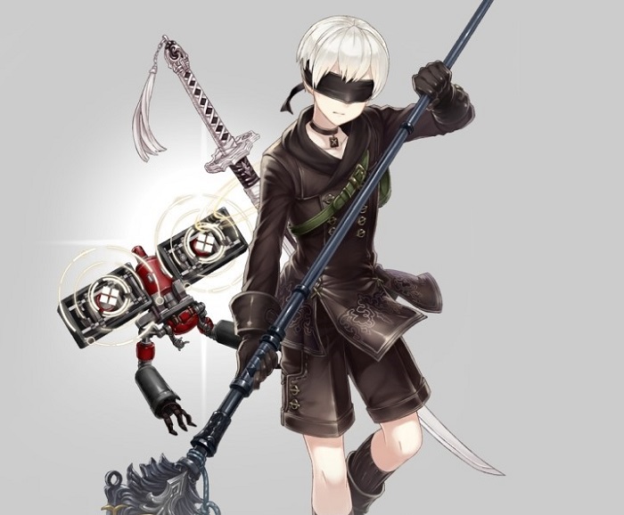 요르하의 남성형 안드로이드 기체 '9S'. 포지션은 창을 사용하는 '팔라딘', 캐릭터 키워드는 '고독'.
