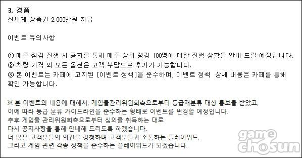 모든 억측을 뒤로 하고라도 이벤트 공통 정책대로 사전 공지 없이 취소, 변경될 수 있는 것을 한달이 지난 아무도 보지 않는 게시물에 몇줄 추가해두는 것이 별도로 안내해주는 조치가 아님은 분명하다.