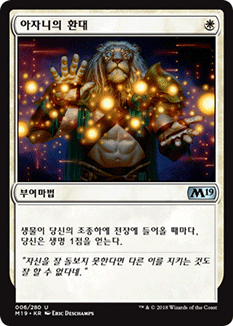 이를 막아줄 수 있는 것이 아자니의 환대입니다. 이 카드가 있는 상황에서 풍경 변화를 사용하면 생명점을 아주 많이 회복할 수 있습니다. 꼭 풍경 변화가 없더라도, 망자들의 벌판이 지속적으로 생물을 만들어내며 꾸준히 생명점을 회복할 수 있습니다.