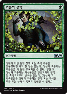 코어세트 2020에서 등장한 여름의 장막은 그러한 수단을 막아내는데 아주 좋은 사이드보드 카드입니다. 상대의 전략을 저렴한 비용으로 막아낼 뿐만 아니라 추가 드로우까지 있는 완벽한 카드입니다.