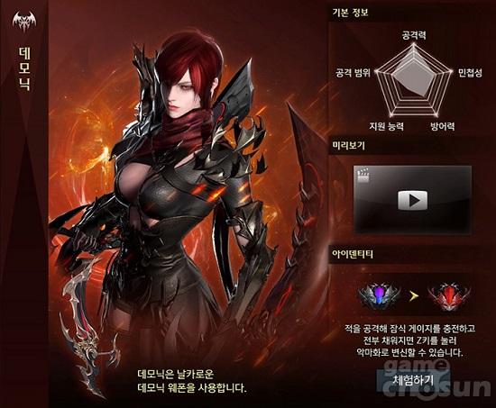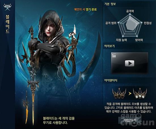 블레이드 직업 정보 = 게임조선 촬영