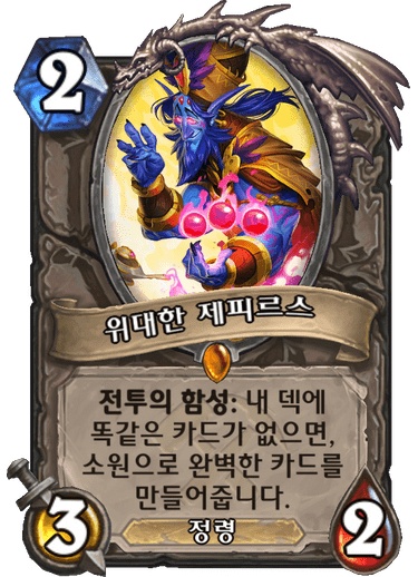 그런데 이러한 기도 메타의 대격변과도 같은 독특한 카드가 공개돼 화제다. 오는 7일 출시하는 하스스톤의 신규 확장 '울둠의 구원자'에 등장하는 카드 '위대한 제피르스(이하 제피르스)'가 바로 그것이다.
