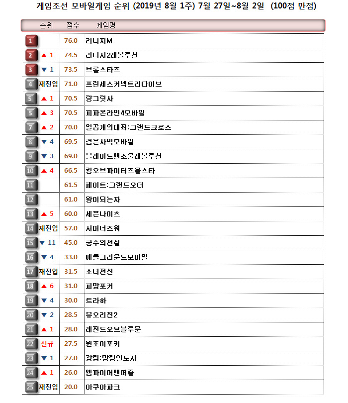 다만 지표는 확실히 긍정적으로 찍히고 있다. 실질적인 업데이트가 없었던 블레이드앤소울레볼루션을 제외하면 모두 매출 지표가 좋아 순위 상승이 있었으며 10위권 내 넷마블의 지분을 고려하면 거의 독주라고 봐도 무방할 정도다.