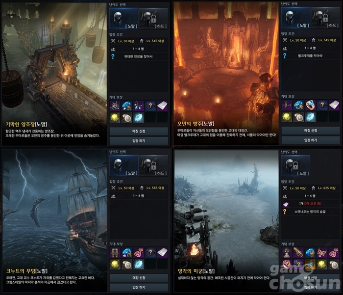 욘 지역의 주요 파밍 던전 4종 = 게임조선 촬영