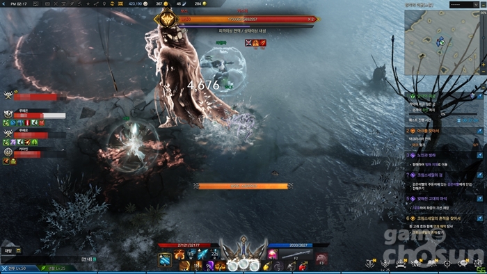 망각의 미궁 보스 카스릭은 지속적으로 장판을 깔고 휘두르기 공격을 하므로 포지셔닝에 주의 = 게임조선 촬영