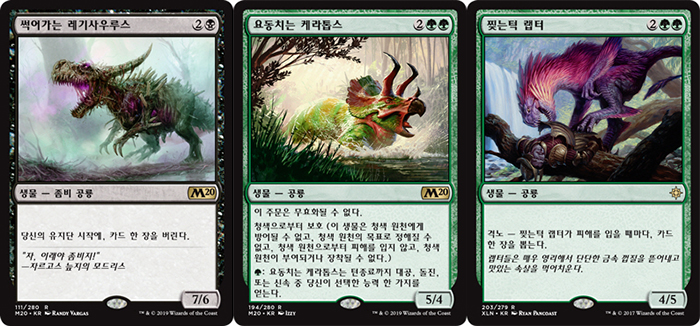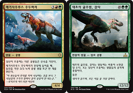 매직더개더링에서는 공룡 콘셉트의 카드들이 적색과 녹색에 주로 포진되어 있었지만, 코어세트2020에서 흑색 공룡이 추가되면서 2색에서 3색 체제의 덱으로 변화를 주는 것이 가능해졌다. 게임조선에서는 코어2020을 포함한 적녹흑 3색 공룡덱에 대해 알아보는 시간을 가져봤다.