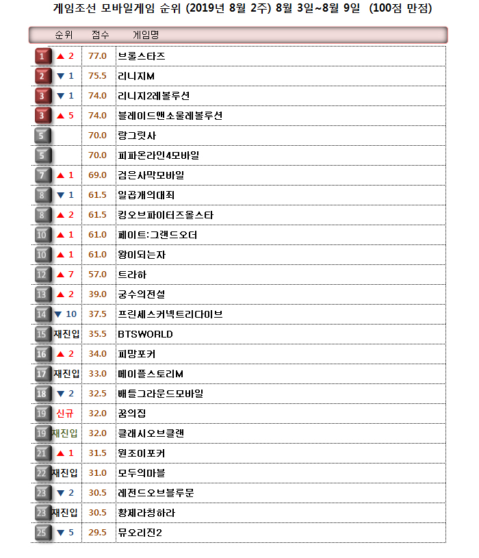 팀 단위 배틀로 뱃지를 빼앗고 빼앗는 전략적 오프라인 매치 '렛츠 브롤', 한국에서 벌어지는 첫 브롤스타즈 공식 e스포츠 대회인 '브롤스타즈 : 오픈 코리아' 등 다양한 행사를 통해 유저들의 호응을 이끌어내고 있는 브롤스타즈가 이번 주 모바일게임 순위 1위를 차지했다.