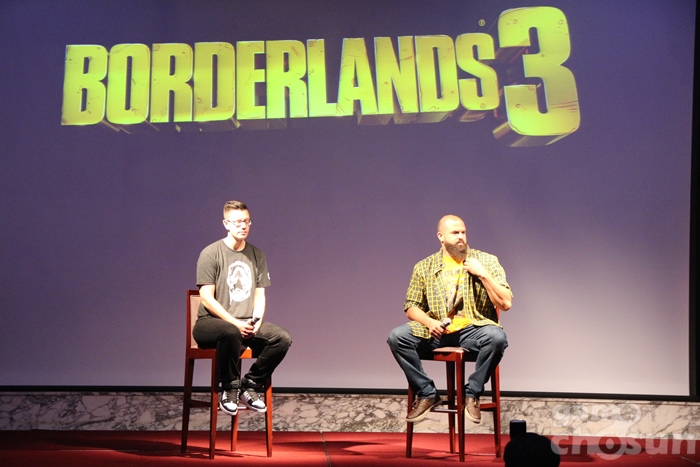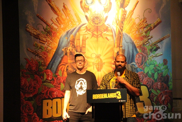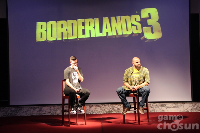 시연회에는 게임을 개발한 기어박스 소프트웨어의 시니어 프로듀서 '앤소니 니콜슨(Anthony Nicholson)'과 아트 디렉터 '스캇 케스터(Scott Kester)'가 참석하여 직접 보더랜드 프렌차이즈의 역사와 특징, 보더랜드3의 지향점을 이야기하는 시간을 가졌다.
