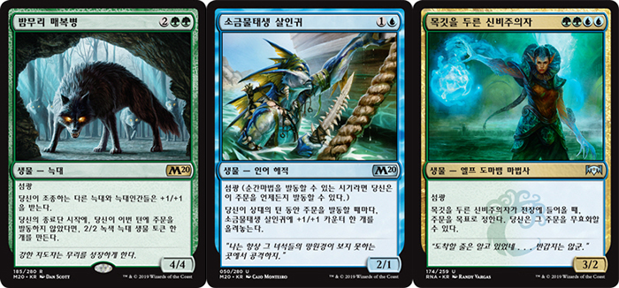 덱의 주력을 이루는 섬광 생물들입니다. 덱 이름에 걸맞게, 모든 생물이 순간마법 타이밍에 나올 수 있는 것이 특징입니다.