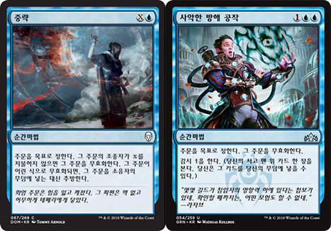 중략과 사악한 방해 공작은, 어떤 주문이든 무효화할 수 있는 카드입니다. 다만 중략은 마나 비용이 많이 필요하므로 너무 아끼지 말고 초반에 사용하는 것이 좋을 수 있습니다.