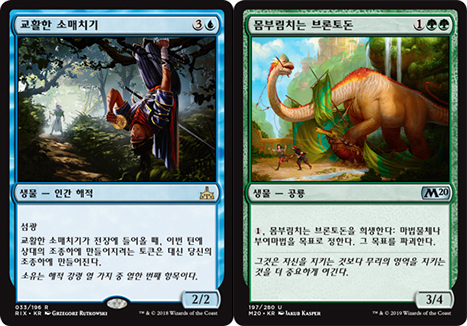 몸부림치는 브론토돈은 ‘황무지 개척’을 사용하는 덱에게 주로 사용하며, ‘감옥 영역’ ‘익살란의 구속’ ‘아즈칸타 탐색’ 등을 사용하는 덱에게도 효과적입니다.