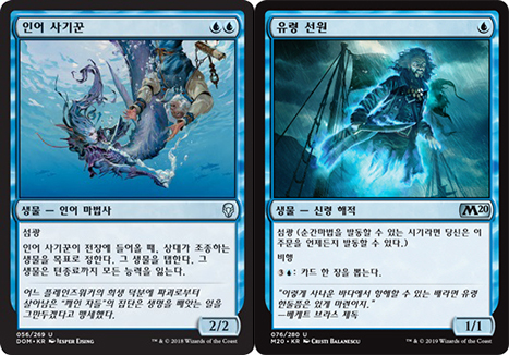 유령 선원은 저렴한 비용의 섬광 생물로써, ‘소금물태생 살인귀’의 능력을 발동시키기 좋고 초반부터 꾸준히 피해 누적이 가능합니다. 4마나가 모이는 시점부터는 상대가 굉장히 까다로워질 수밖에 없는데, 무효화 주문을 의식해서 플레이를 천천히 하자니 상대는 유령 선원의 능력을 사용할 것이기 때문입니다. 이렇게 상대를 조급하게 만드는 보이지 않는 효과도 있습니다.