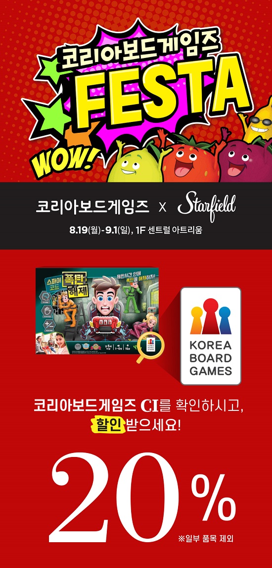 [자료제공 = 코리아보드게임즈] 보드게임 전문 기업 코리아보드게임즈는 스타필드 토이킹덤과 함께 8월 19일부터 9월 1일까지 2주간 스타필드 고양(경기도고양시 덕양구 고양대로 1955) 1층 센트럴 아트리움에서 코리아보드게임즈 페스타 행사를 벌인다.