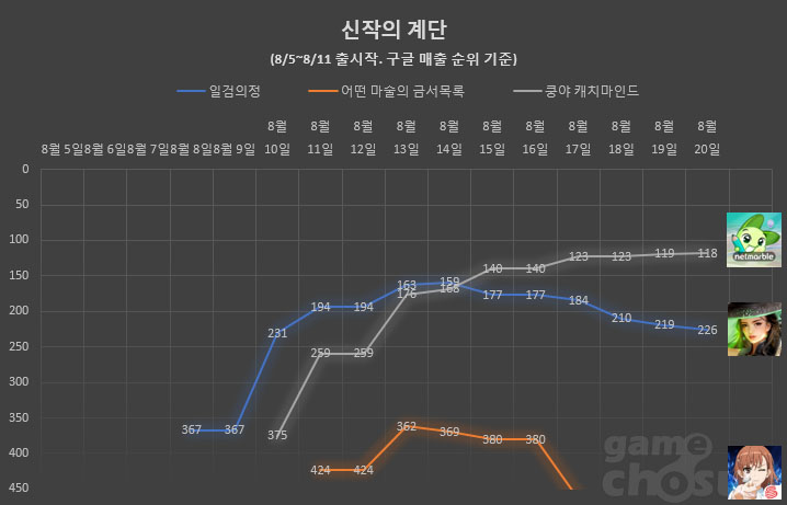 안 아픈 손가락이 없다는 게임사가 애달픈 심정으로 보내게 되는 오픈 첫 주. '신작의 계단' 코너를 통해 지난 한주 간 출시된 주요 신작들의 첫 주말 성적을 알아본다.
