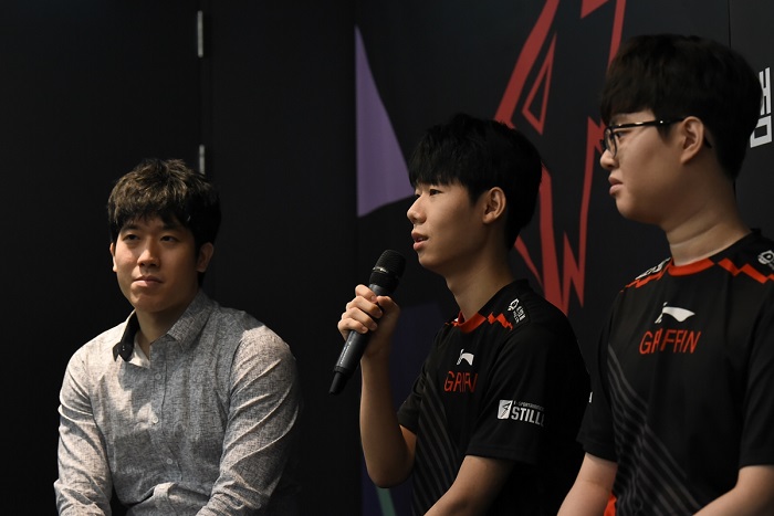 김정균 감독: SKT 팬은 우리 팀이 유미를 어떻게 할지 정말 궁금해할 것 같은데 1세트를 꼭 지켜봐달라. 그리핀의 콩라인 타이틀을 쭉 유지시켜줄 생각이다.(웃음)