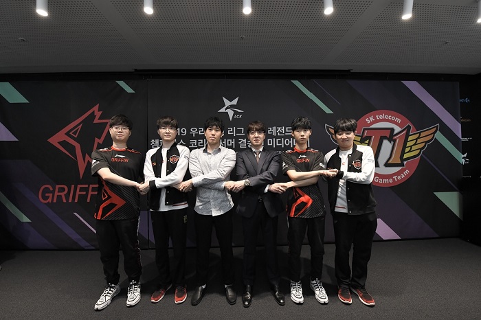 행사에는 정규 시즌 1위를 기록하며 결승전으로 직행한 그리핀, SKT T1 선수단이 참석했다.