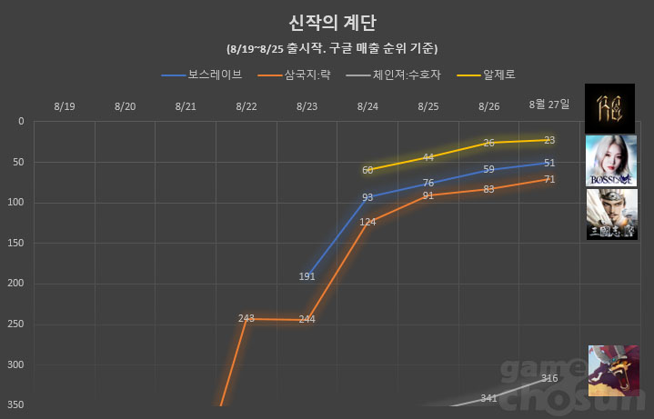 (제로게임즈, 8/22 : 60위 → 44위 → 26위 → 23위 )