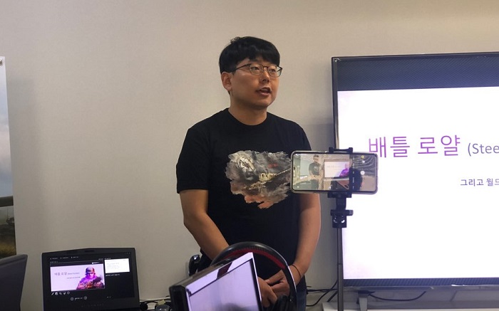 배틀로얄 모드 시연 중 각종 상황을 설명하는 '김승호' 매니저 = 워게이밍코리아 제공