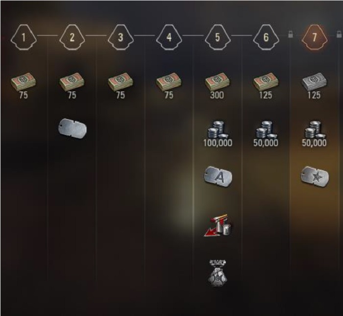 그렇다면 배틀로얄 모드의 보상은 무엇일까? 바로 채권 4,850개와 크레딧 215만이다. 이외에도 스킨과 프리미엄 계정 이용권, 업적, 증표 등이 있다. 4,850개의 채권은 일반적으로 1시간 씩 6개월 동안 해야만 모을 수 있는 양이다. 보상은 각 단계별로 지급되므로 꾸준히 플레이할 필요가 있다.