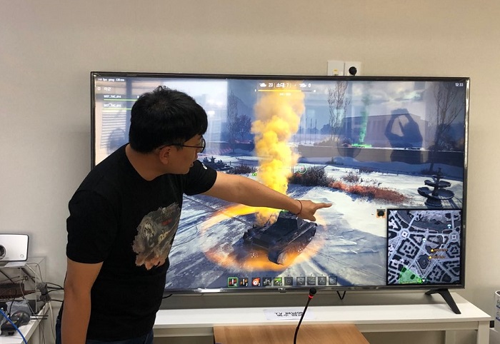 탱크 아카데미에서 배틀로얄 : 스틸헌터 모드 소개를 맡은 '김승호' 매니저 = 게임조선 촬영