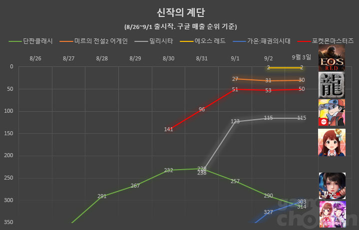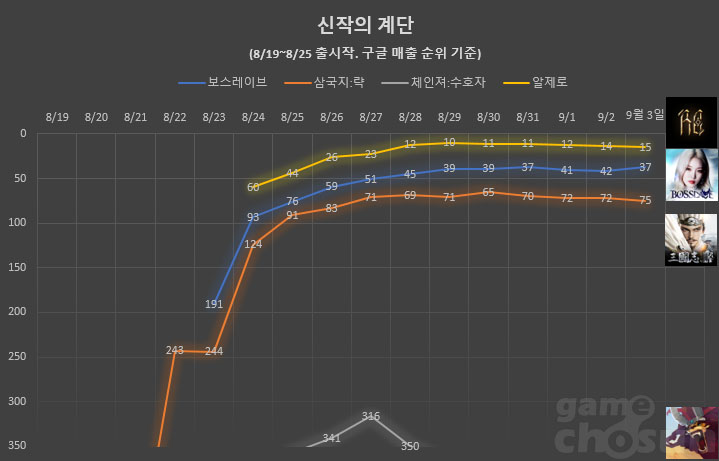 (채플린게임, 8/28 : 386위 → 327위 → 303위 )