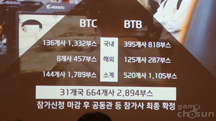 BTC 조기신청 접수 시작 2시간 만에 완판된 BTC관은 부스 위치가 확정된 대형 참가사를 제외하고 중소형 부스와 동선 세부계획이 진행되고 있다고 발표했다. 특히, 올해는 게임 비즈니스 상담이 이뤄지는 BTB관에는 유럽, 미주, 아시아 국가들의 공동관이 들어설 예정이기도 하다.