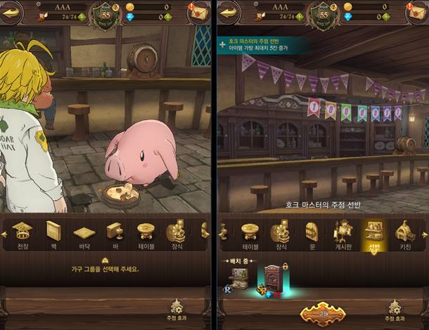 호크를 통해 가구를 구입하여 주점을 꾸밀 수 있는 것은 물론 꾸밈 점수에 따라 '가방 최대치 증가' 등 유용한 버프 효과인 [주점 효과]를 추가로 얻을 수 있어 완전히 새로운 즐거움을 줄 수 있을 것으로 보인다.